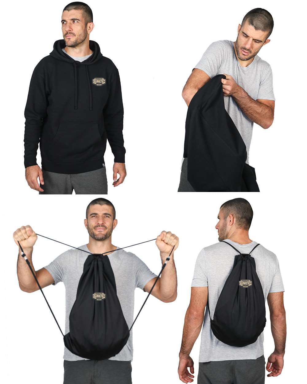 - Patented 2-in-1 hoodie converts into functional drawstring backpack in seconds